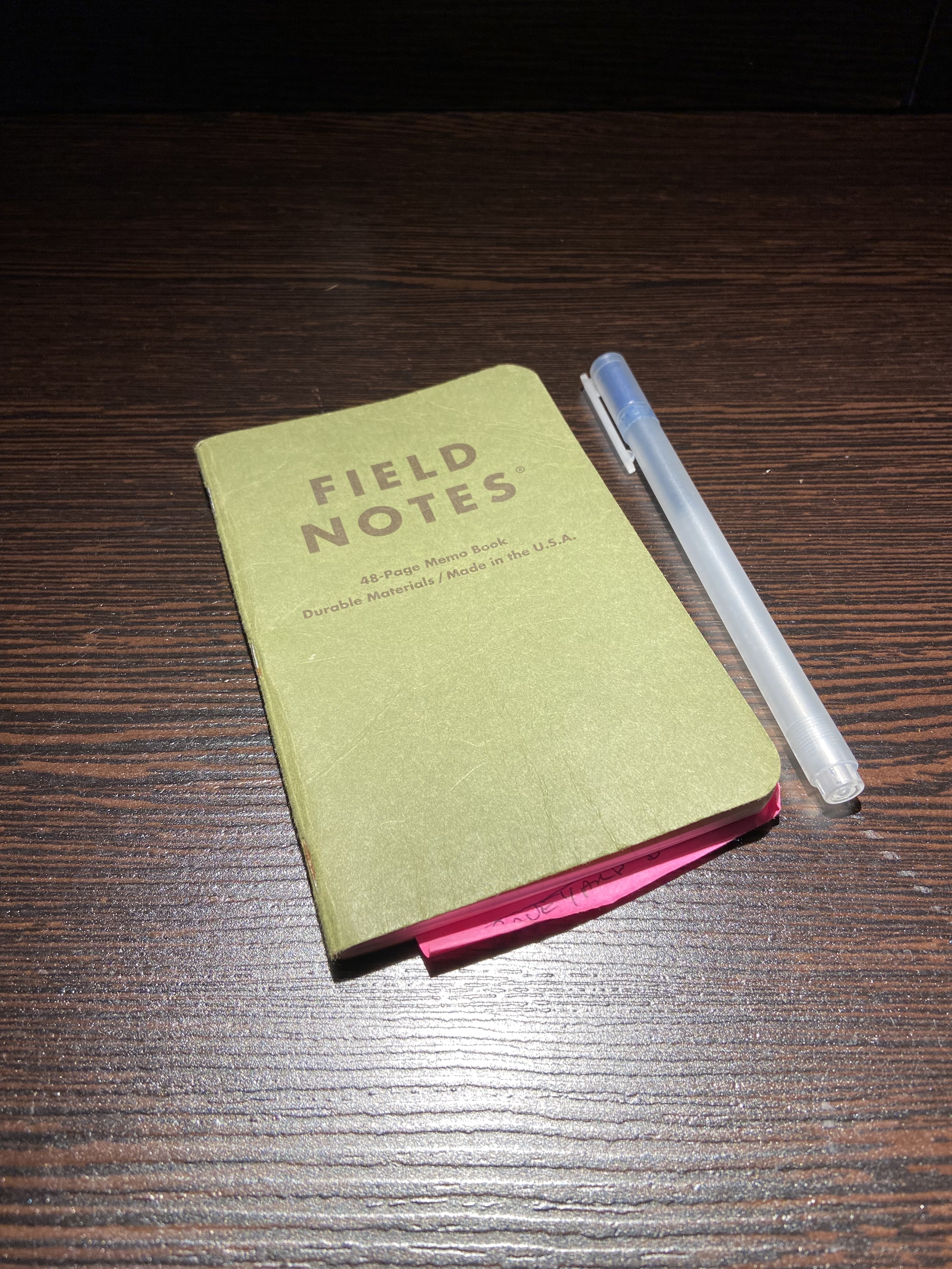One of the reasons I like Field Notes is they look good a little battered by time. I flipped through the pages and there it was, the original brainstorming. Clearly Taylor Swift must have been in my ears at the time.