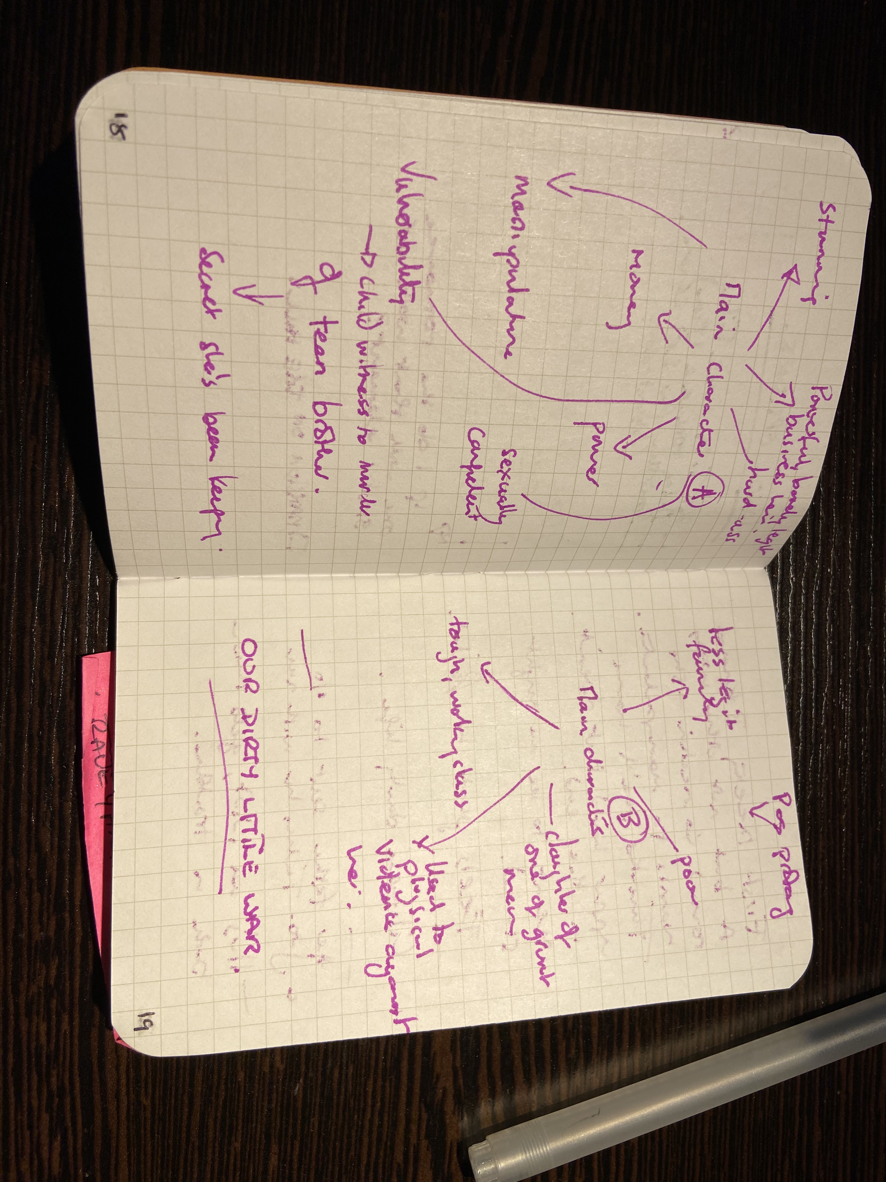 I feel like the post it notes were probably added later, once the characters had names and their connections were important. It was probably my way of keeping track of the other characters I was introducing in the story and whose side they were on.